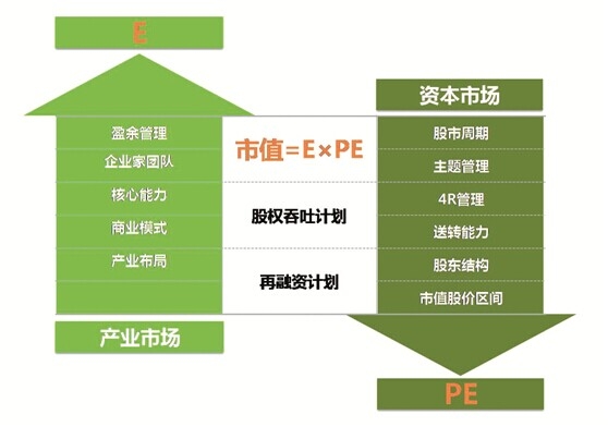 如果是廣義的市值管理經(jīng)營體系,它應(yīng)該就是把和市值相關(guān)的所有影響E的重要因素和所有影響PE的重要因素都有效地進(jìn)行管理。